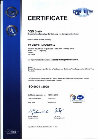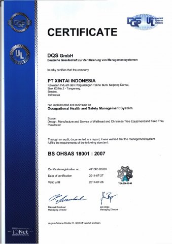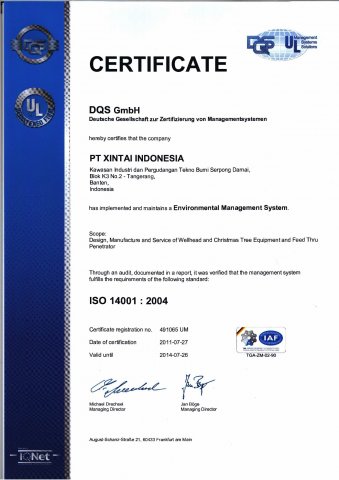 PT. Xintai Indonesia prides itself getting ISO 9001:2008 for Audit Internal of Quality Management Systems (ISO 9001-2008) 2009 and Awareness of Quality Management Systems (ISO 9001-2008) 2009 By PT. DQS Certification Indonesia. PT. Xintai Indonesia commitment to environmental health and safety excellence complements our commitment to global sustainability. It means reducing our impact on the environment, protecting the safety of our employees and customers, and supporting the communities where we do business - while ensuring the sustained growth and profitability of the company. HSE responsibility is fundamental to the PT. Xintai Indonesia value. As a world-class company and the world leader in supplier & repair, our vision is to make measurable improvements in the health, safety and environmental aspects of our products, services and operations. Every day. Every month. Every year. Company managers and supervisors are responsible for establishing and continually improving management systems to implement this policy, including creation and maintenance of a clean, healthful, and safe workplace for our employees, prevention of pollution, using energy and other natural resources efficiently, and for compliance with applicable laws and regulations, Bit Performance standards, and other external requirements to which the company subscribes. The QHSE Program provides a framework that ensures health and safety controls are incorporated into all operations, and includes provisions for systematic identification, evaluation and control of potential workplace hazards.